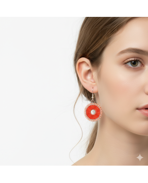 Bright colors, metallic reflections, and a marquise shape — these are the key features of our orange earrings. They measure 2 cm in length and 2 cm in width, and are entirely handmade. You can even pair them with a matching necklace, which is also 100% handmade.