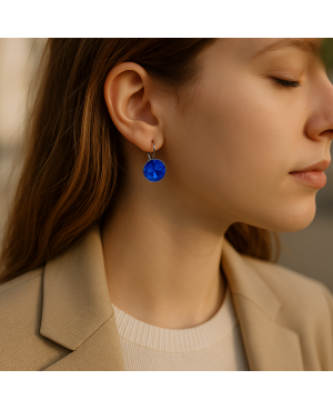 With a total length of 2.5 cm and a diameter of 1 cm for the round part, these earrings will amaze you with their vibrant, electric blue color. They add a classy and luminous touch to your outfit while keeping a simple and elegant style.
