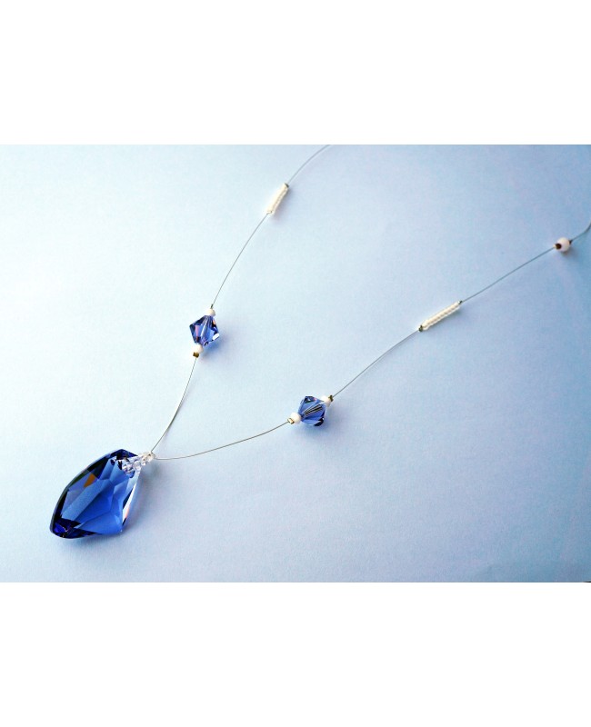 Envie d'un bijou à la fois simple et sophistiqué? Ce collier mi-long réalisé en perles de Swarovski (pendentif, toupies, rondes 3 mm) et rocaille s'accordera aux tenues les plus simples ou habillées.