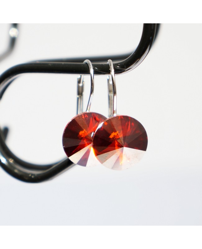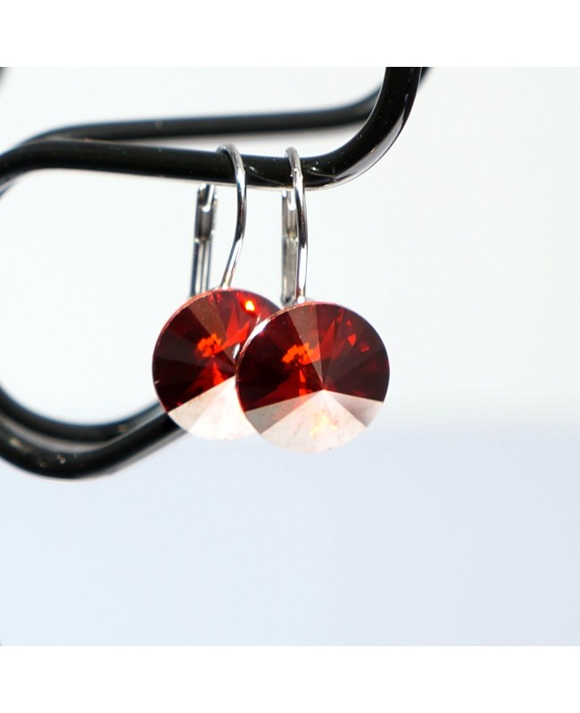 This pair of delicate red earrings is perfect for those who like discreet costume jewelry. They are made from Swarovski crystal with 12mm pink cabochons and a silver fastener. These fashion earrings were assembled in our workshop in Belgium. Just a few are available!