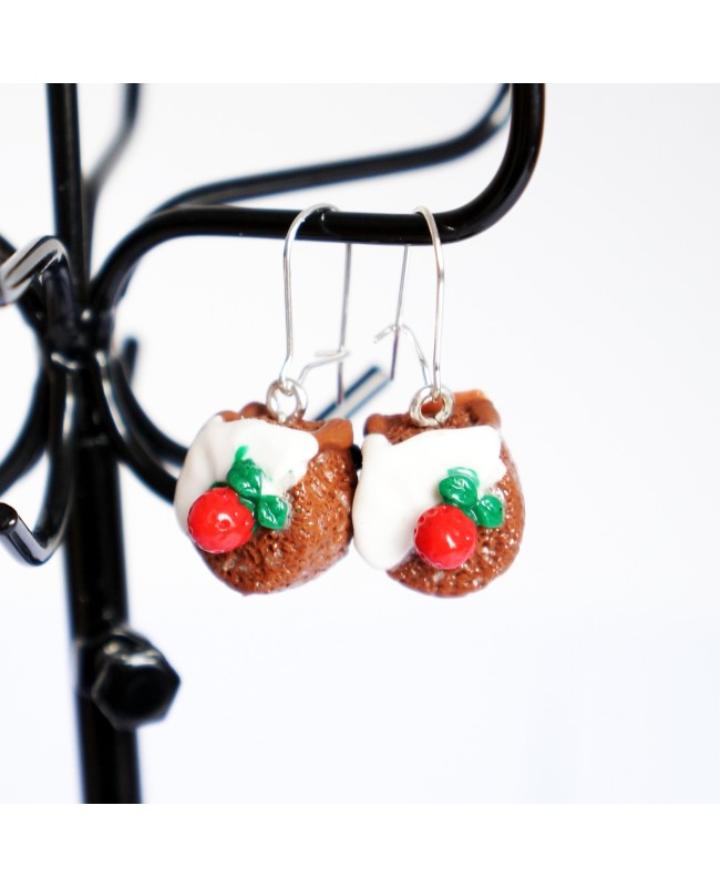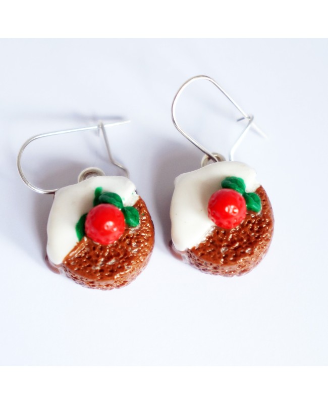 Want to express your personality and your sweet tooth? If so, don't miss these beautiful chocolate cake earrings with white frosting and a strawberry on top. The cakes are made from polymer clay and have a 1.5cm diameter. The total length of the earrings is 3cm.