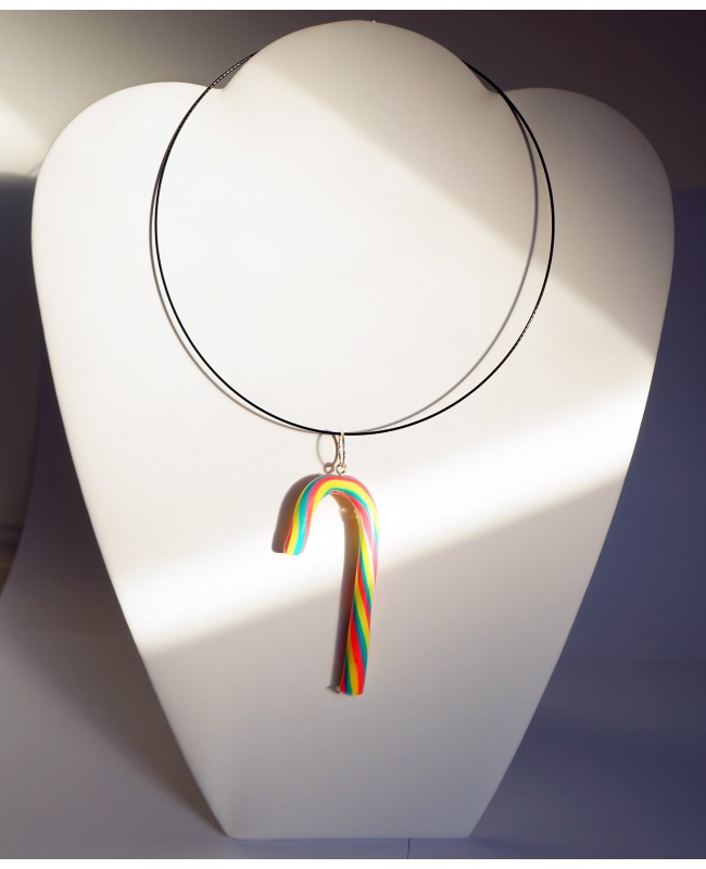 This pendant is perfect for both young and old. Those with a sweet tooth will love the pendant’s bright colors and candy cane shape. The neon colors merge perfectly for a fun, unique piece. This handmade pendant is 7cm long.