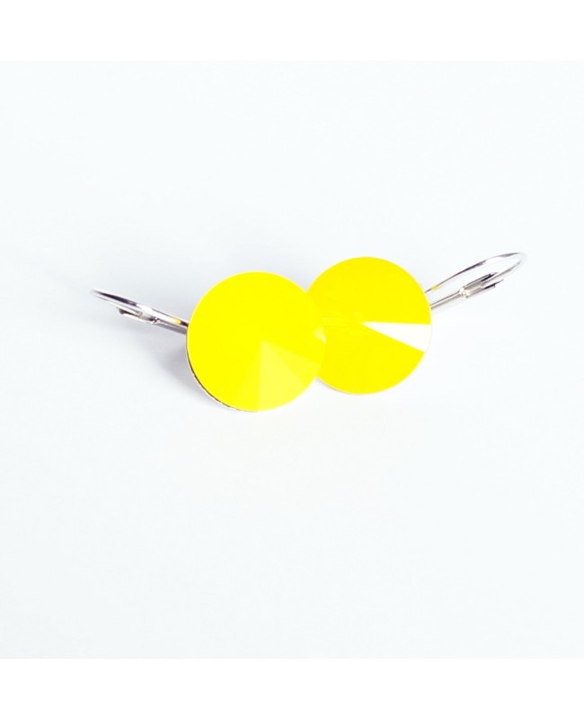 This little pair of yellow earrings is destined for those who like fantasy jewelry that is noticeable, yet discreet. Crafted in Swarovski crystal, the yellow studs have a diameter of 12 mm and silver plated supports. The “yellow opal” stones are from Swarovski’s Spring/Summer 2017 Innovation collection. Also available in “graphite” gray