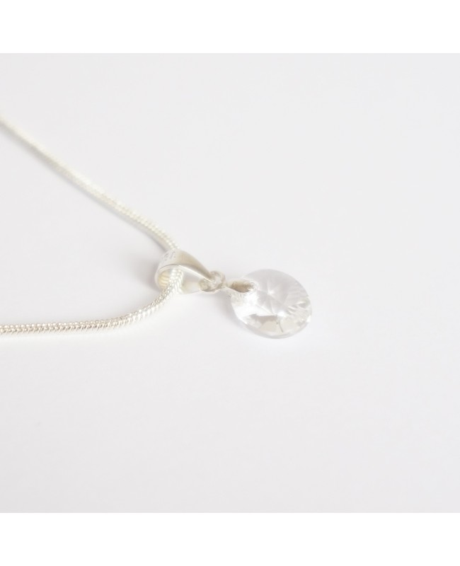 Class, luxury, elegance and discretion are the key characteristics for this tiny pendant. This round Swarovski crystal measures 0.23in (6mm) in diameter. The bail that links it and the chain are in silver. This pendant has been handmade in our workshop and is a luxury version fashion jewel.