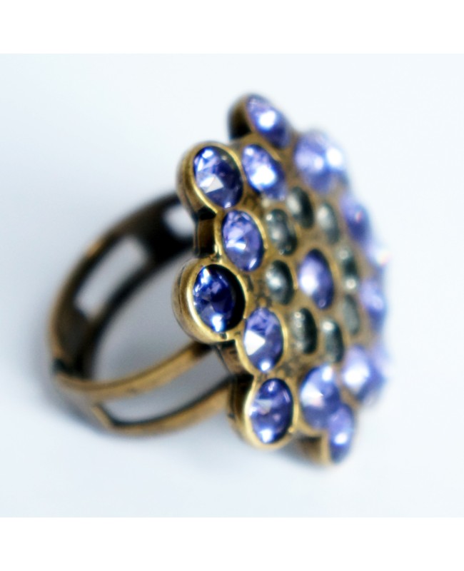 If you like glitzy diamante jewelry, you will love this beautiful ring, made with purple and white Swarovski crystals. The bronze ring part is adjustable and the diamantes were added by hand in our workshop.