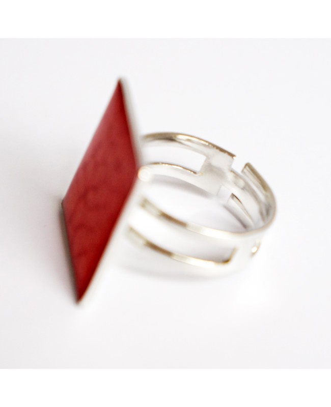 You already met our little round ring; here's the square version! This is our new painted resin ring. Just like its round sister, it boasts a pearly shine and prism shape. It is highly unique and reveals its radiance in the daylight. It is 2cm long on its side and you can easily change the size of the silver-colored adjustable ring.