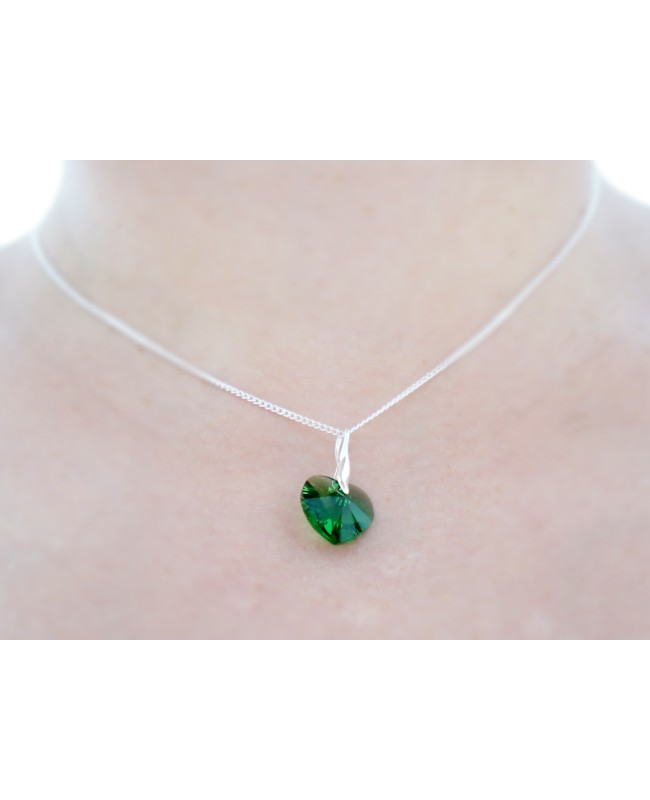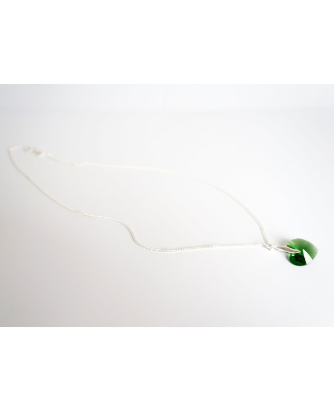 If you are looking for a unique, discreet piece of jewelry, you are sure to love this heart-shaped pendant. It is made from clear Swarovski crystal with green sparkle. It is attached to a pendant ring and accompanied by a silver choker chain. The heart is 1.5 cm wide.