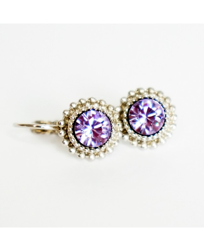 These drop earrings are 18mm long. These purple and silver earrings are an excellent imitation of the most precious earrings thanks to the little Swarovski crystal cabochons surrounded by little silver beads. They are extremely versatile and can be worn all day long or for a party, ceremony or wedding, or can even be given as a gift.