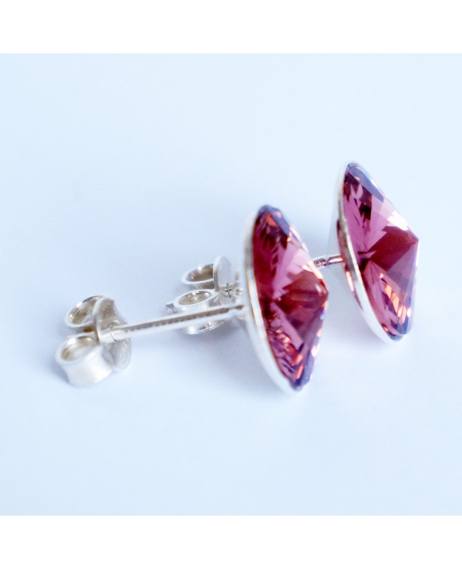 These earrings, which are worn against the ear, are stylish yet discreet. With a diameter of 13mm, the Swarovski crystal cabochon is fixed onto a stud earring. The most striking feature of these fashion earrings is their pink crystal cabochon. The end result under the light is unique and original.
