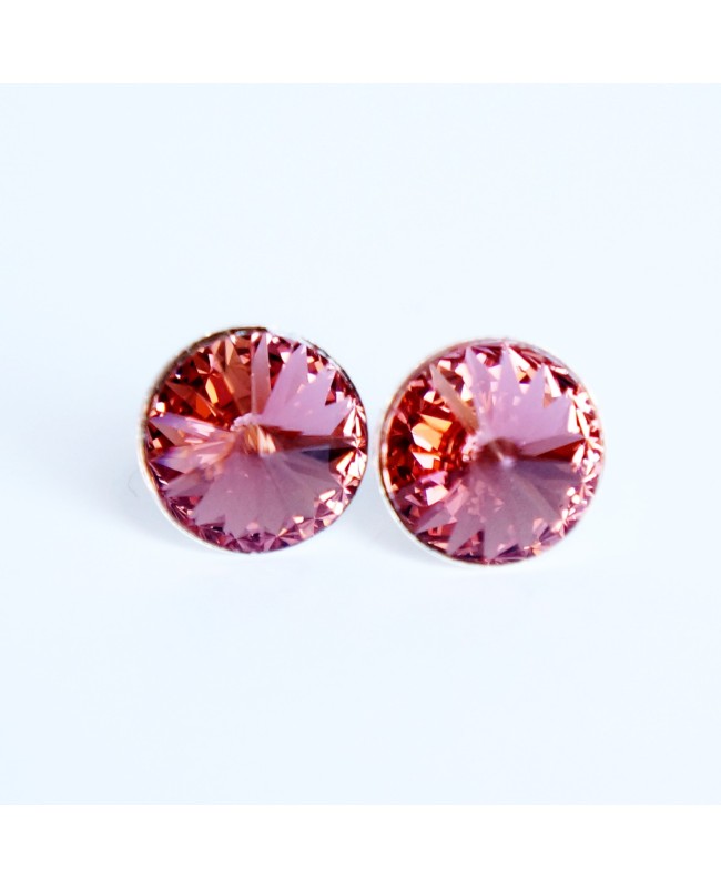 12 mm-diameter pink Swarovski crystal cabochons.
