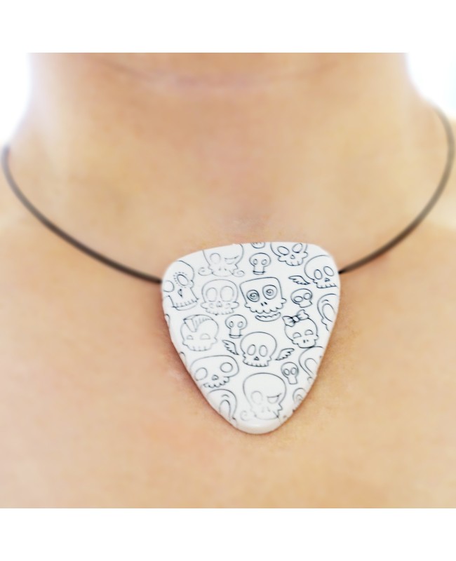 Rebellion comes to your neck with this white pendant with skulls.Each drawing is different and you’ll add a touch of humor to your rebellions thanks to the skulls with knots, wings and crests.In short, your entourage will be amused by your humor and boldness.