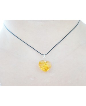 This transparent pendant plays with light to reveal a unique and multicolored transparency.It is high quality as it as a crystal heart. It has a width of 18 mm and a height of 15 mm and was made by hand in our workshop. It is then attached to a silver suspension ring which is attached to a black cotton cord.This pendant is worn as a choker as the chord is 42 cm.