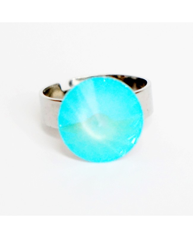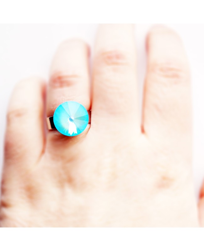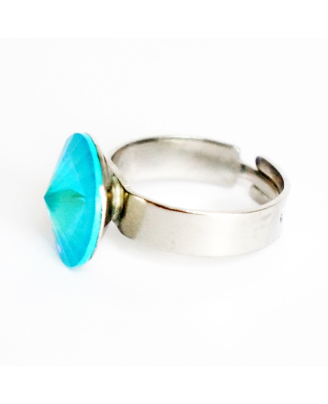 Are you looking to treat yourself, or do you want to buy that special someone a big rock? Don’t miss this magnificent blue-green ring with a base which adjusts to your finger size. Be dazzled by the sparkle of this fashion ring, the 14mm cabochon on which is made from crystal.