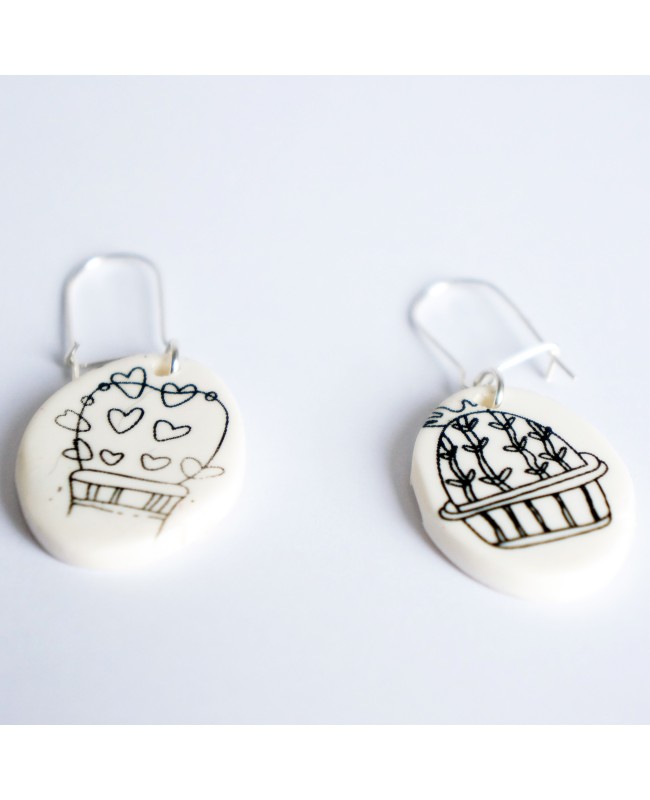 Spikes and curves can go well with these 100% handmade earrings. Black and white, you will no longer see life in the same way with the cacti that make up this costume jewelry. Made from polymer clay, there’s only one pair available. So why not spice up your life right now?