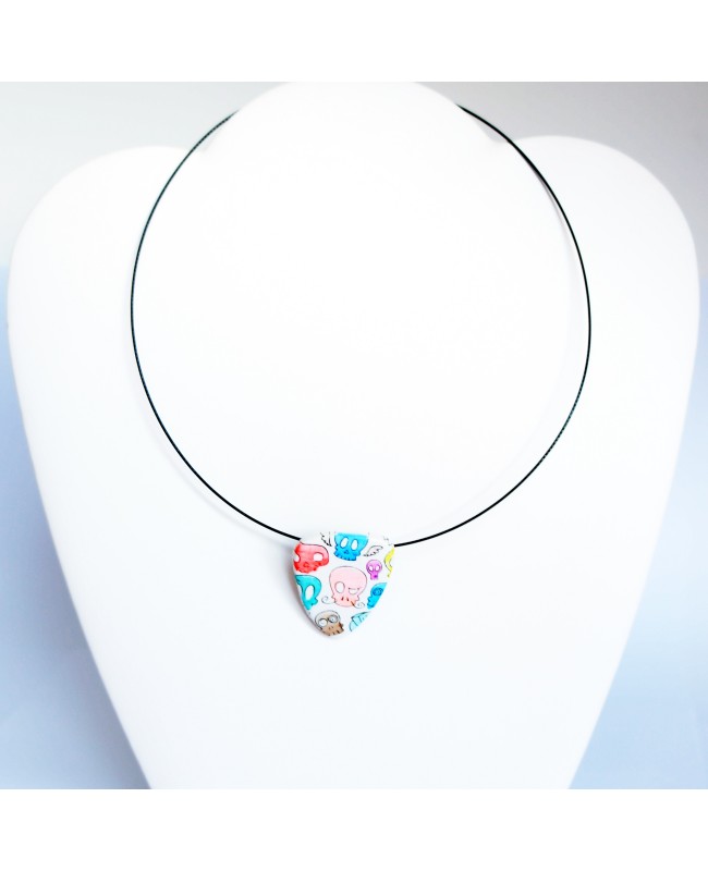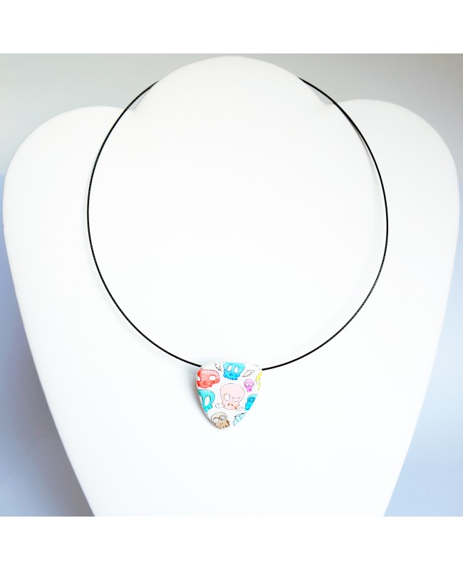 It’s time to show your real personality with this pendant completely handmade in our workshop. In the shape of a triangle, it was made from polymer clay. Skulls are then added to it and then colored. You won’t scare anyone with this necklace but you’ll declare your personality loud and clear with these contrasts.