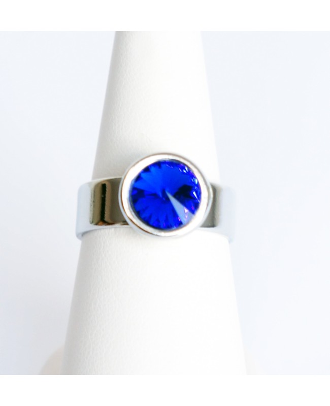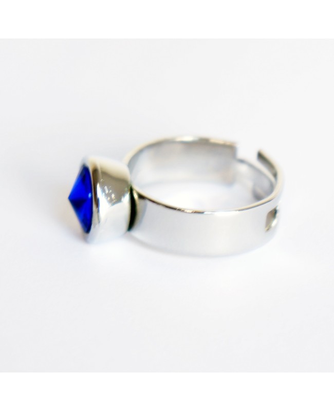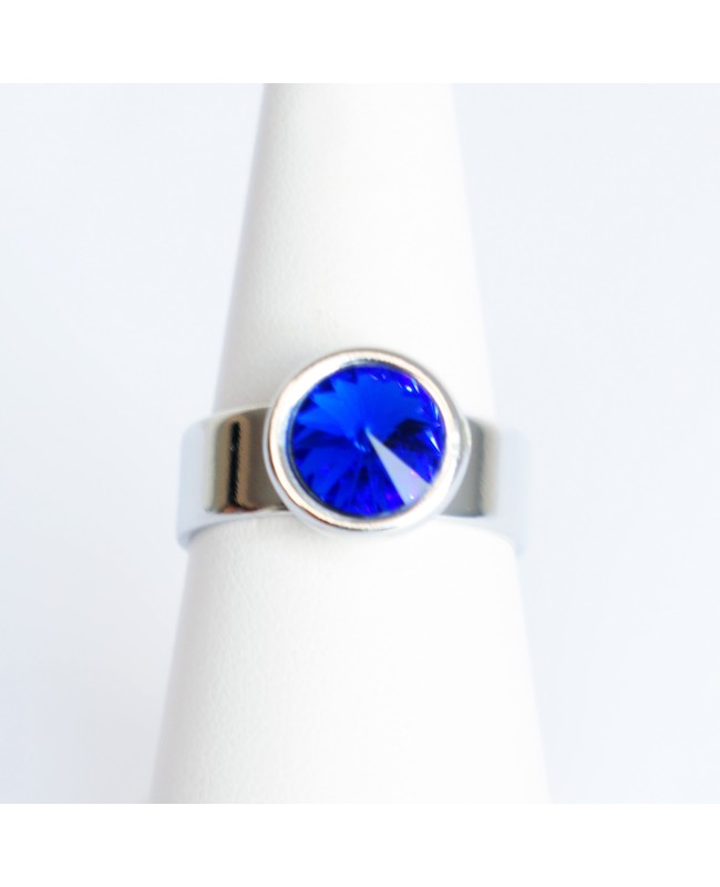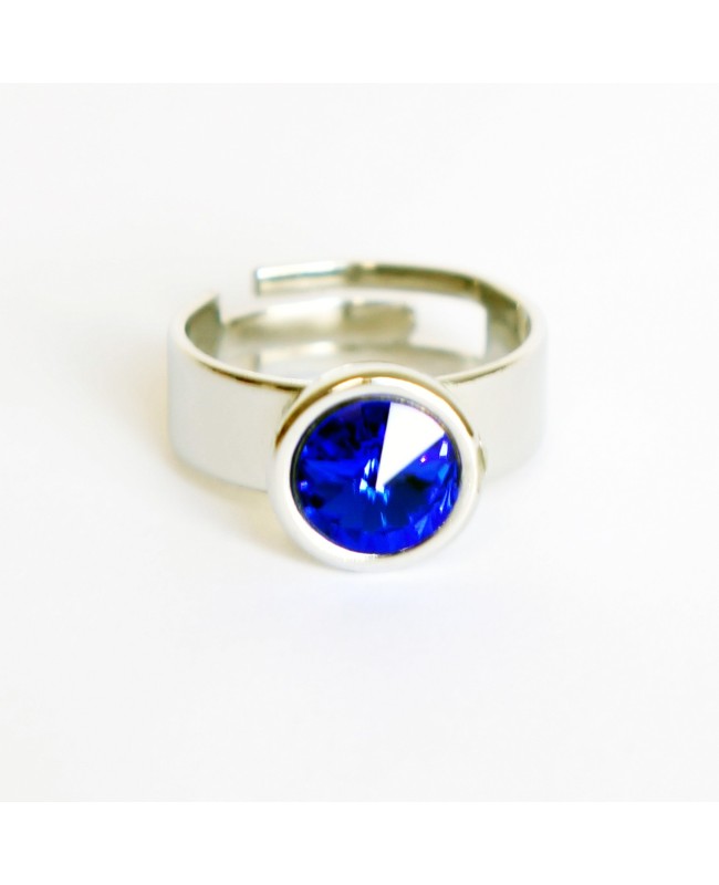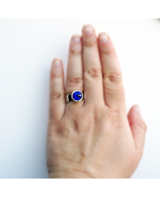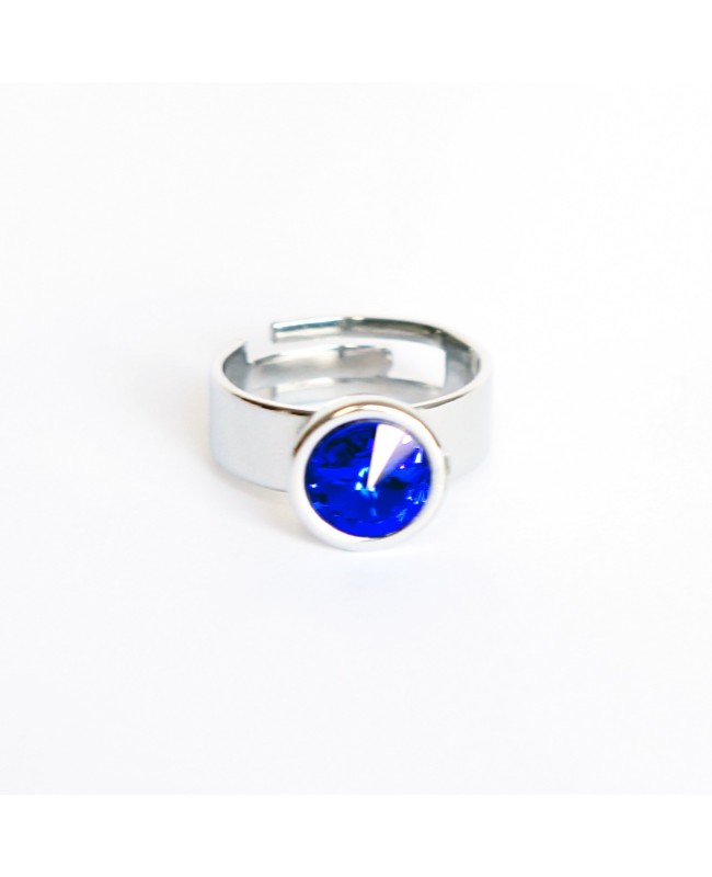 This Swarovski crystal ring will make a stunning statement with its electric blue color, which adds a lot of brightness. With a 1 cm diameter, the crystal cabochon reveals all its reflections in the light. The ring band is adjustable, allowing you to customize the size of this piece of jewelry.