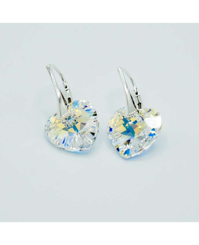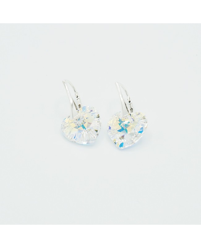 If you're looking for higher-end jewelry crafted with quality materials, these earrings are perfect for you. The mounts are made of 925 silver, ensuring both quality and durability over time. Additionally, the 14mm hearts are crafted from Swarovski crystal. In the daylight, these earrings have an incomparable sparkle, reflecting a spectrum of colors. Furthermore, their transparent color makes them discreet and easy to wear.