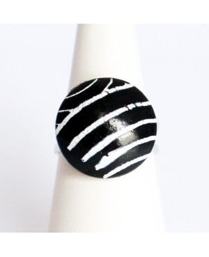 If you're looking for a colorful and lively costume jewelry piece, you'll adore this handcrafted ring. The top part is made from polymer clay, crafted in our workshop. It measures 2.5 cm on each side and combines green with yellow and red polka dots. This cabochon has been affixed to a silver-toned metal ring base. Its advantage? Its size is adjustable, allowing you to customize it to fit your finger.