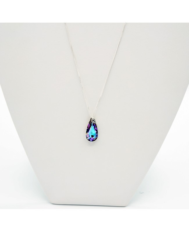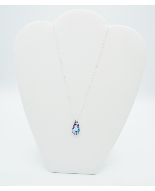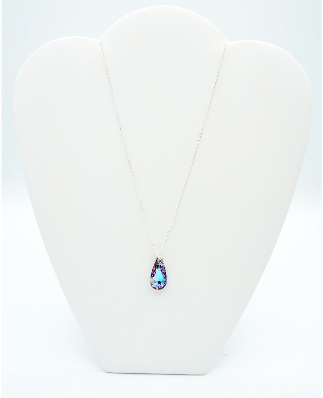 This Swarovski crystal pendant or necklace will appeal to the boldest with its multiple reflections that appear in the light. Its pear or teardrop shape enhances its uniqueness, and it's further emphasized by the silver pendant clasp we've added to its top. It comes with a silver chain