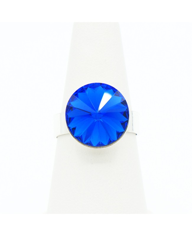 Whether it's for gifting or treating yourself, you'll be captivated by this hand-assembled ring. With its vibrant blue color, you'll love to see the light reflecting in the facets of this Swarovski crystal cabochon. It becomes very bright and unique, with reflections that play with transparency. The silver-toned support of this ring is adjustable, so there won't be any size issues, and you can easily expand or reduce it.