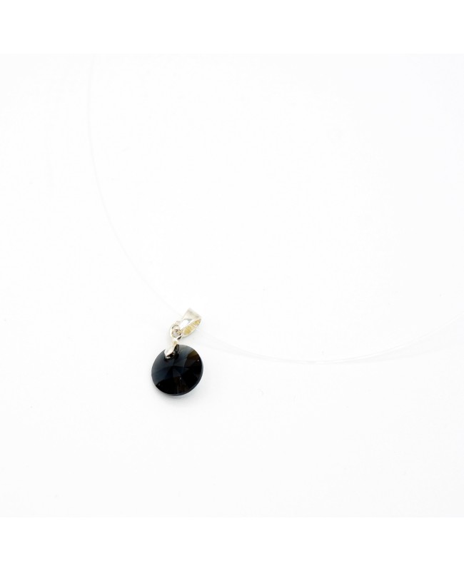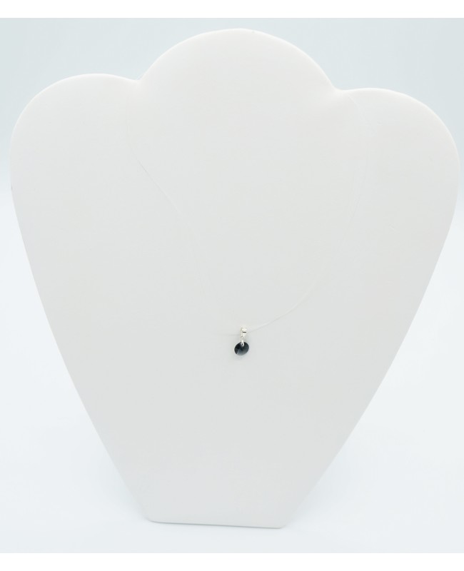 If you like classy and discreet jewelry, you will love this small black pendant made of Swarovski crystal. Round in shape, it will barely be noticeable due to its small size of 8 mm in diameter, and it comes with a transparent nylon cord.