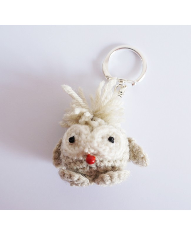 A la recherche d'un porte-clés original? Ce petit hibou est fait pour vous! Réalisé au crochet avec de la laine de qualité, il attend avec impatience de rejoindre sa nouvelle famille. Cette petit boule d'amour comblera également les collectionneurs d'hiboux qui souhaitent agrandir leur collection. Une petite chouette bijou de sac peut également l'accompagner!