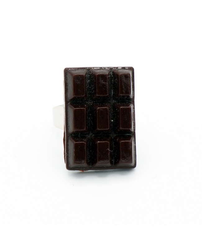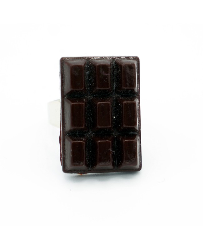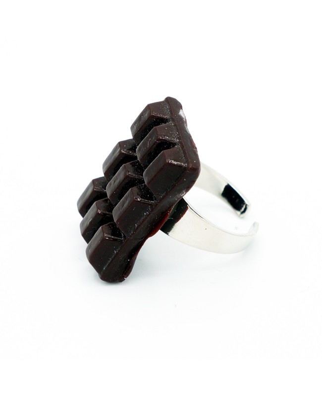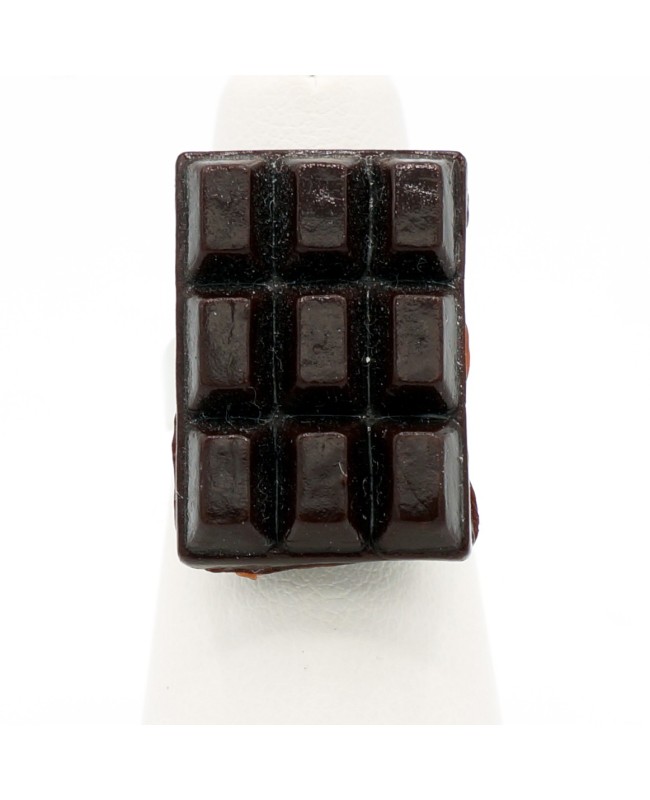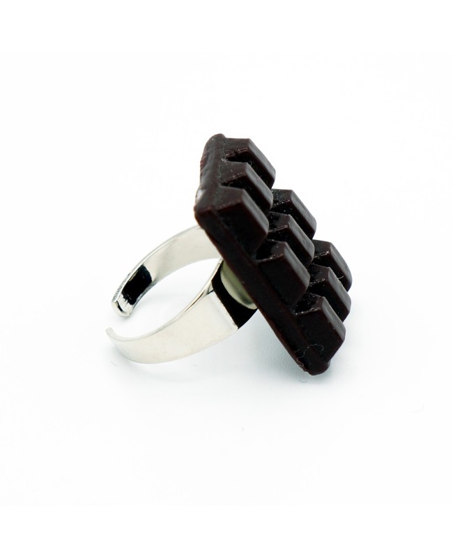 This mini chocolate bar looks just like a real one, but it is not edible. Made from polymer clay, it has been attached to a silver-tone metal ring base. Although designed for children, you can slightly adjust the size of this ring.