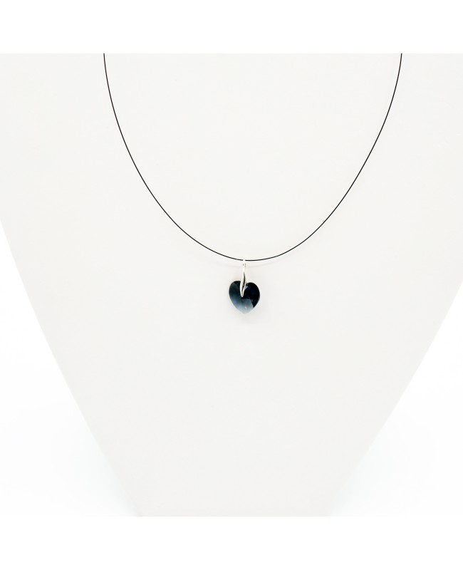 A new transparent black heart pendant is available, set on a black wire cord. Still made of Swarovski crystal, it is attached to a bail and worn as a choker. The heart measures 1.5 cm in width.