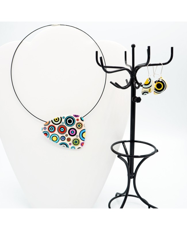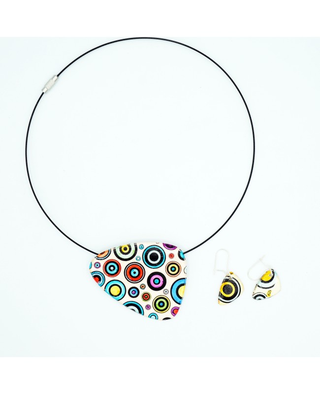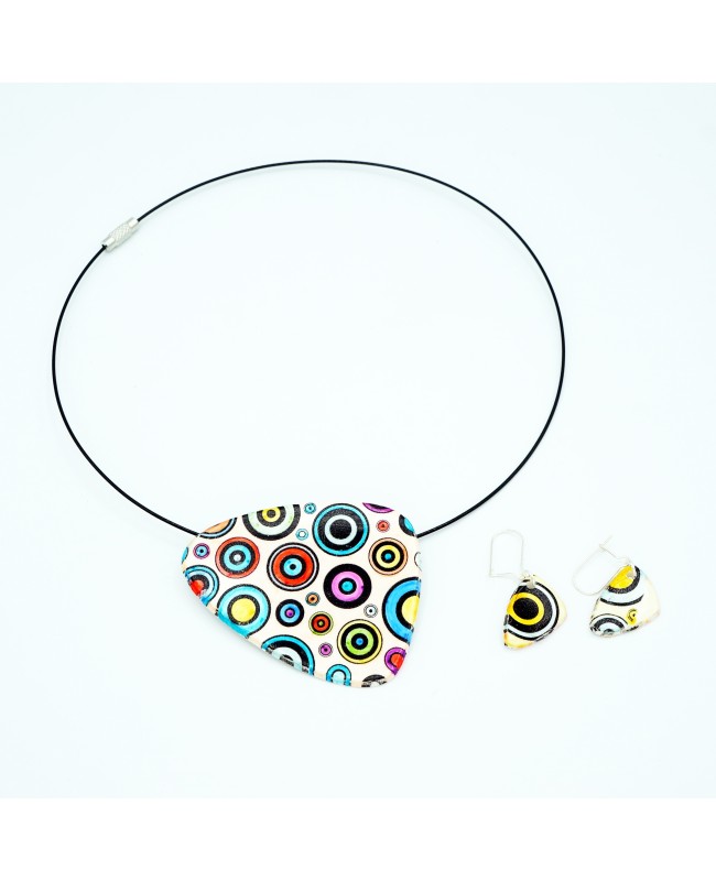 Add a splash of color to your life with this multicolored jewelry set, featuring a necklace and a pair of earrings! The choker-style necklace is adorned with a polymer clay pendant. The handmade earrings add a touch of originality with their 4 cm length.