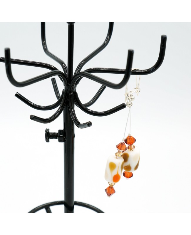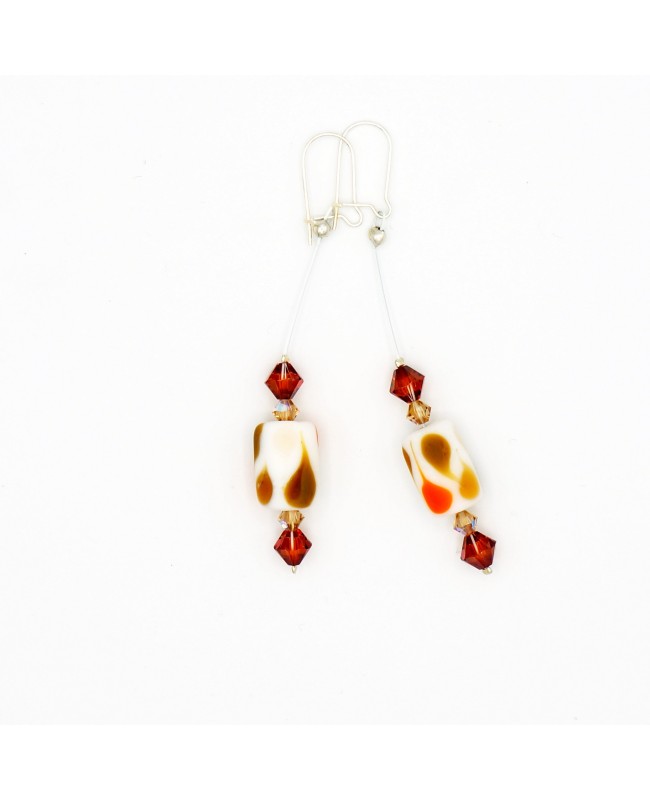 These elegant and delicate earrings feature a harmonious blend of matte glass beads and crystals in pastel shades of white, orange, and brown, creating a look that is both gentle and radiant. With a total length of 7.3 cm, they stand out for their finesse and subtle color palette.
