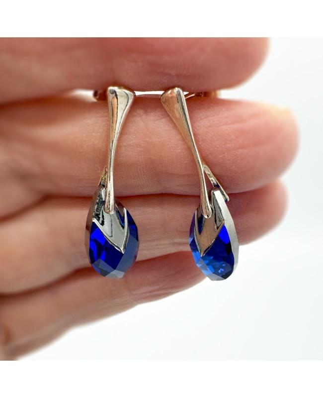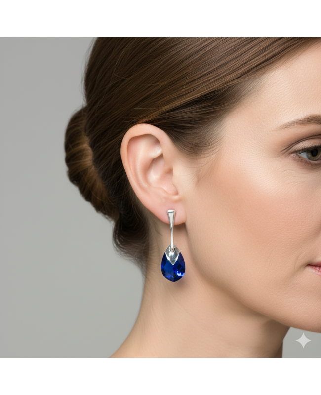 These blue dangle earrings combine elegance and modernity. Their teardrop-shaped blue crystal pendant catches the light and reflects beautiful sparkles with every movement. Set on a silver base, they are lightweight, comfortable, and easy to wear both daily and for evening occasions. With their refined and timeless style, these fashion earrings for women add a touch of color and chic to any outfit.