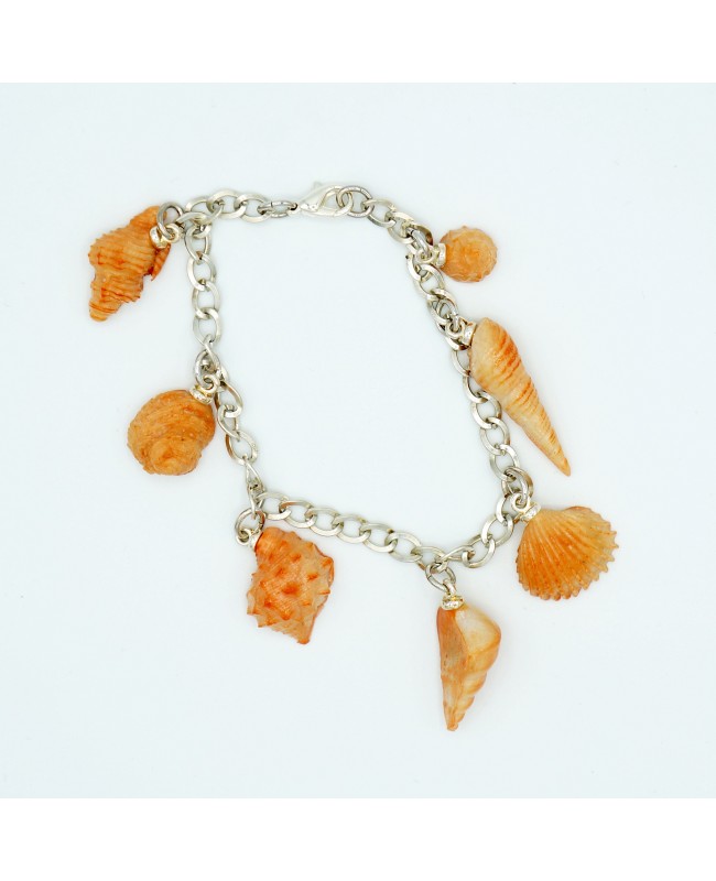Let yourself be charmed by the artisanal authenticity of this handmade shell bracelet, carefully created in our workshop. Each polymer clay seashell — delicately shaped by hand — brings an elegant and poetic marine touch to your wrist. Hanging from a silver-toned metal chain, the shells create a light and refreshing pendant effect, perfect for elevating summer outfits or evoking the spirit of the ocean all year round.