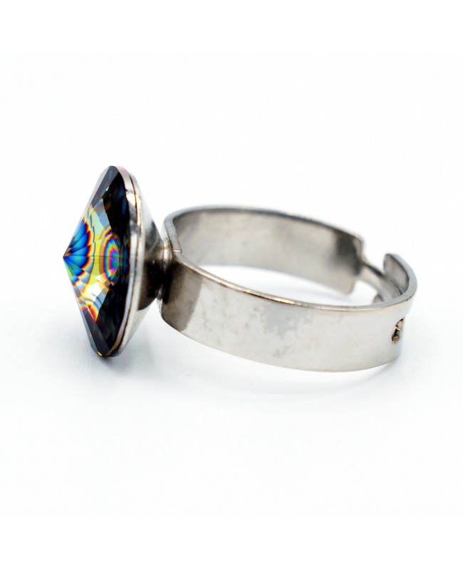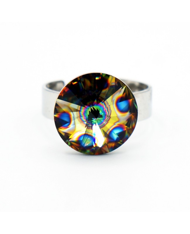 Add a touch of color and originality to your outfits with this stunning fashion ring, adorned with a multicolored cabochon featuring iridescent reflections. Its modern, radiant design captures the light from every angle, creating a unique and mesmerizing effect. Adjustable and comfortable, this ring fits all sizes and is perfect for everyday wear as well as special occasions.