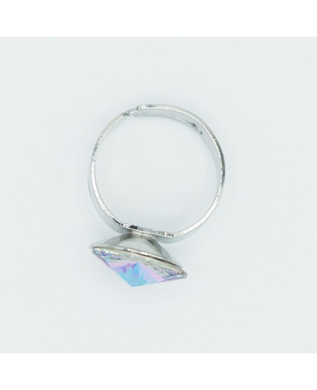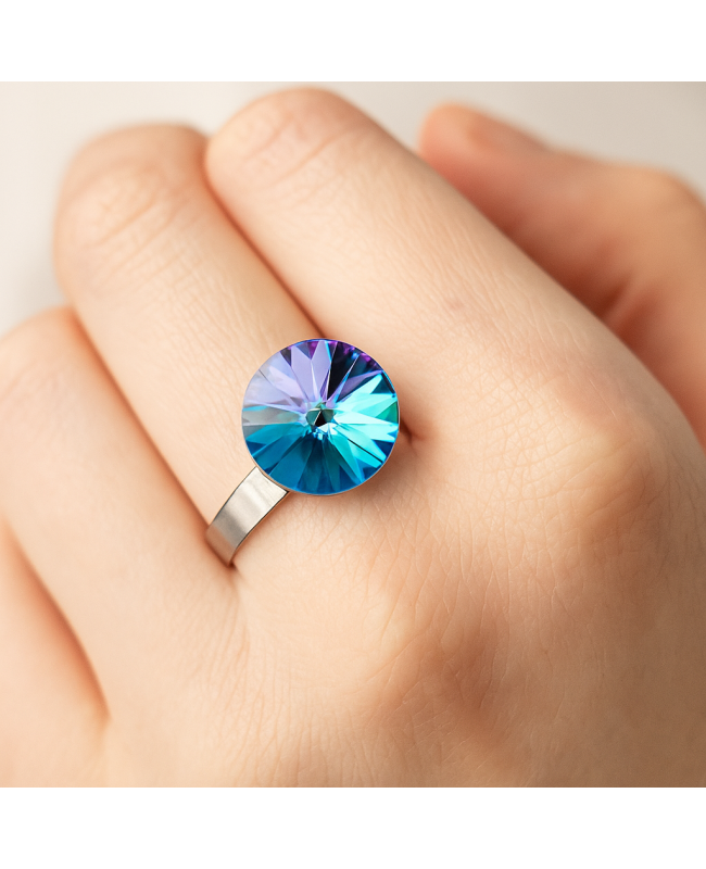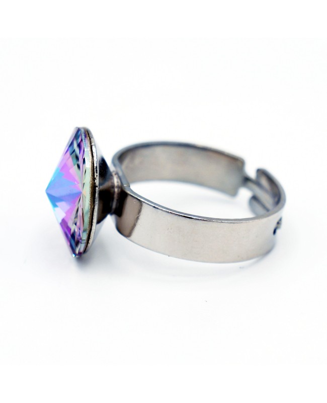 Multicolored fashion ring with a shimmering cabochon. Its blue, purple, and turquoise reflections bring brilliance and originality. Adjustable silver-toned band, lightweight and comfortable to wear.