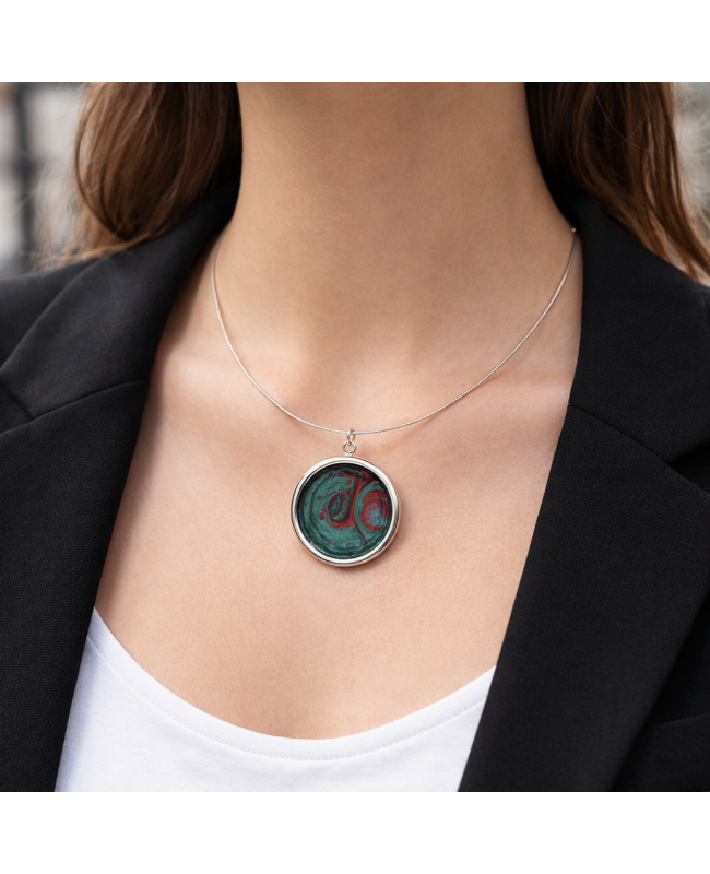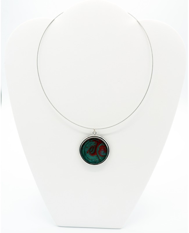 With its 38 mm round pendant in deep red and green tones, this piece is eye-catching without being over the top.
