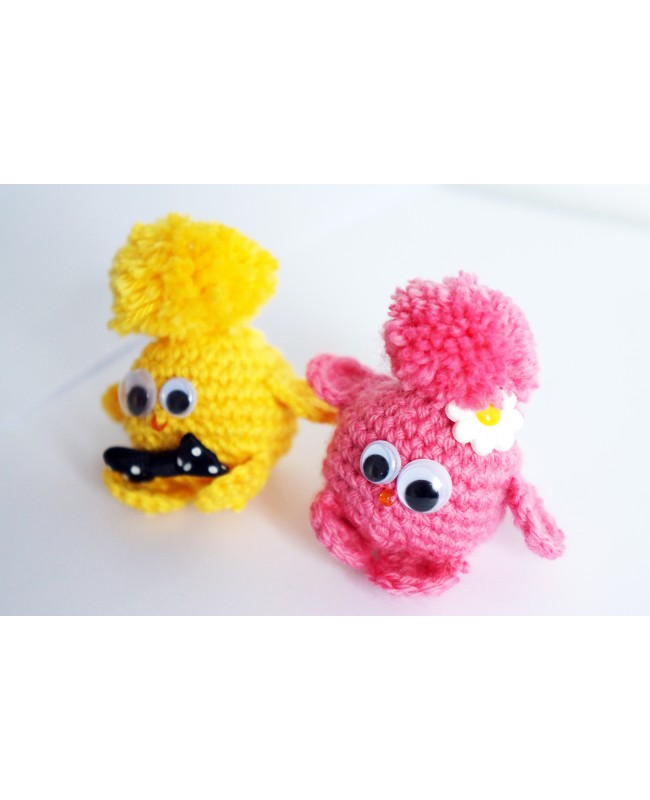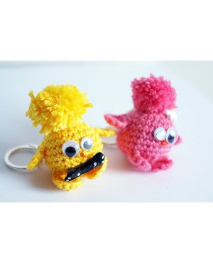 Yellow Mr. Piou-Piou and Pink Miss Piou-Piou are small crocheted birds eagerly waiting to join their new families. Thanks to their attachable rings, they will bring color and excitement to your keys.