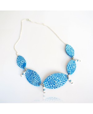 This pendant was assembled in our workshop. It is also available in clear blue, metallic pink and metallic blue.