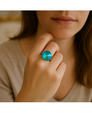 Bagues rondes en cristal d’Autriche montée sur argent. Un bijou fantaisie fait main, lumineux et élégant,...