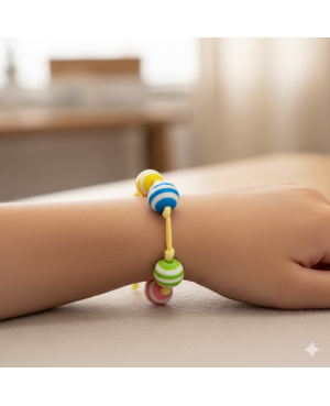 Ce bracelet multicolore a la particularité d'avoir été réalisé à partir de perles fait-main. En effet, ces dernières ont été fabriquées à partir d'argile polymère ce qui leur assure solidité et résistance.