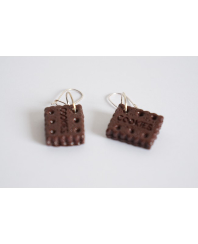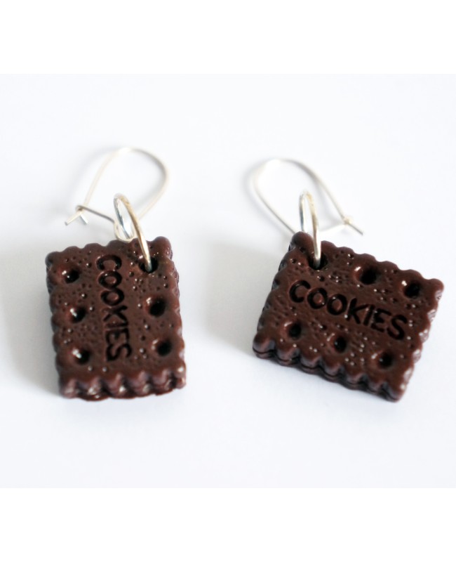 Ces boucles d'oreilles sont réalisées artisanalement par nos soins. Chaque petit biscuit au chocolat mesure 18 mm de longueur pour 14 mm de largeur. Avec le support, elles mesurent 4 cm de longueur.