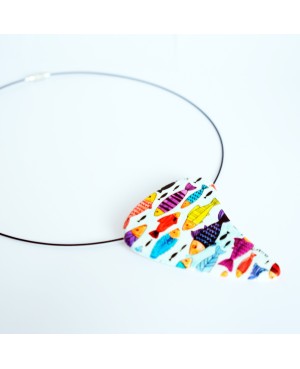 Ce collier ras-le-cou est orné d’un pendentif rond décoré d’une étoile multicolore. Chaque pièce est fabriquée artisanalement, ce qui en fait un bijou unique.