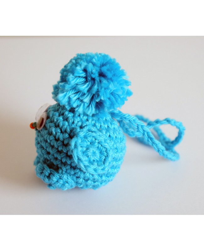 Aux enfants qui cherchent un porte-clé original à accrochet à leur trousse ou aux plus grands qui cherchent un bijou de sac ou une attache original, ce petit piou-piou bleu n'attend plus que vous. Cet oiseau turquoise vous séduira par ses grands yeux et sa couleur vive et illuminera votre journée!