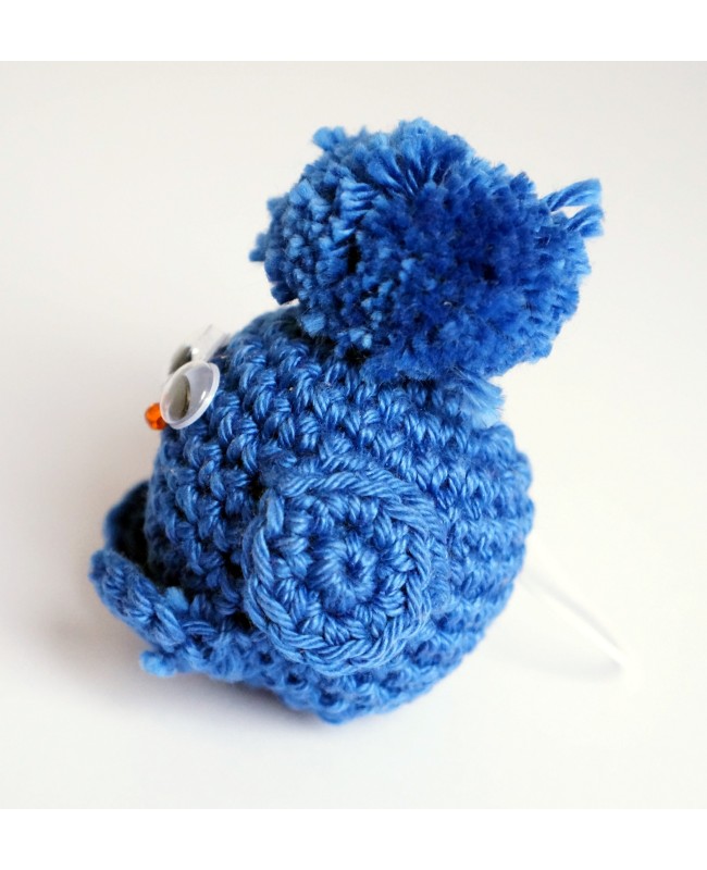 Ce petit oiseau bleu foncé a été réalisé à la main, au crochet, dans notre atelier. Grâce à son attache sur la tête, il peut s'accrocher à votre sac à main, une trousse, une porte, un téléphone ou un vêtement.