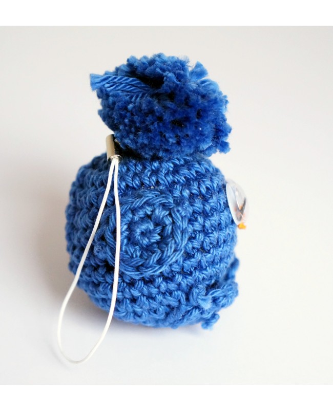 Ce petit piou-piou bleu foncé fait main recherche un nouveau propriétaire qu'il pourra accompagner toute la journée. Réalisé en laine, il existe dans de nombreuses autres couleurs. Découvrez-les tous dans la rubrique "bijoux de sac". Ils existent également en version porte-clés.