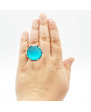 Originalité et classe sont les maîtres mots pour cette bague ajustable réalisée avec des cristaux de Swarovski turquoise. D'un diamètre de 25 mm, vous aimerez la sobriété des couleurs et l'éclat des cristaux. Les petites toupies turquoises sont opaques mais les facettes renvoient la lumière..