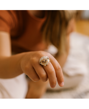 Si vos enfants aiment les animaux cette bague mouton est exactement ce qu'il vous faut. En argile polymère, elle a été fixée sur un support de bague en métal argenté et même si elle s'adresse aux enfants, vous pourrez modifier légèrement la taille de cette bague.