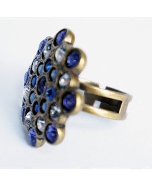 Bague bleue verte en cristal autrichien