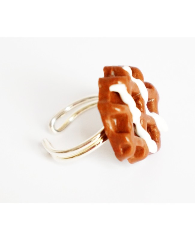 A la recherche d'un cadeau d'anniversaire original et pas cher? Si vous souhaitez faire plaisir à une petite fille, offrez cette bage ajustable en forme de gaufre de Liège avec son coulis blanc. Avec son support ajustable argenté, vous êtes sûr(e) que cette bague s'adaptera parfaitement à son doigt. Légère, elle reste de petite taille puisque la gaufre a un diamètre de 2 cm.
