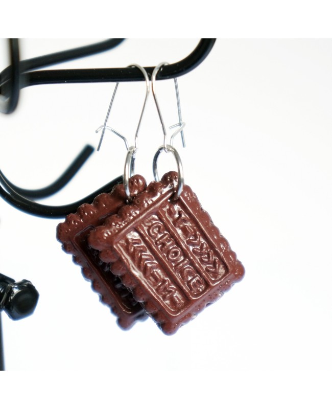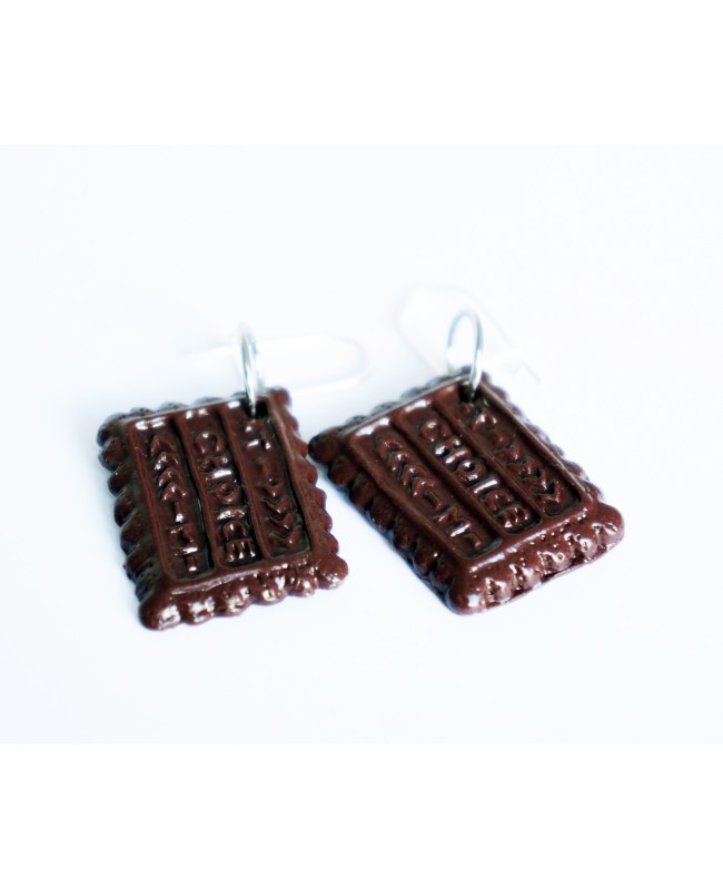 Envie d'affirmer votre personnalité et votre gourmandise? Si oui, ne passez pas à côté de ces boucles d'oreilles gourmandes représentant des cookies ou des biscuits au chocolat. Réalisées à la main en pâte polymère, elles mesurent 2,5 cm de longueur pour 2 cm de largeur.