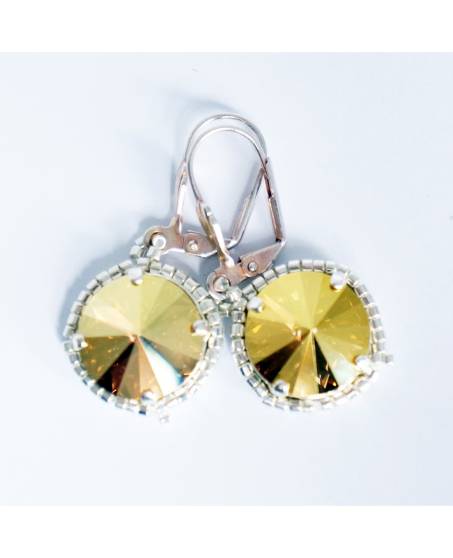 A la recherche d'un cadeau original? Ces boucles d'oreilles dorées feront un cadeau exceptionnel et à petit prix. Leur centre est jaune / doré et est serti de petites perles argentées (=délicas). Chaque perle a été tissée à la main de manière artisanale.